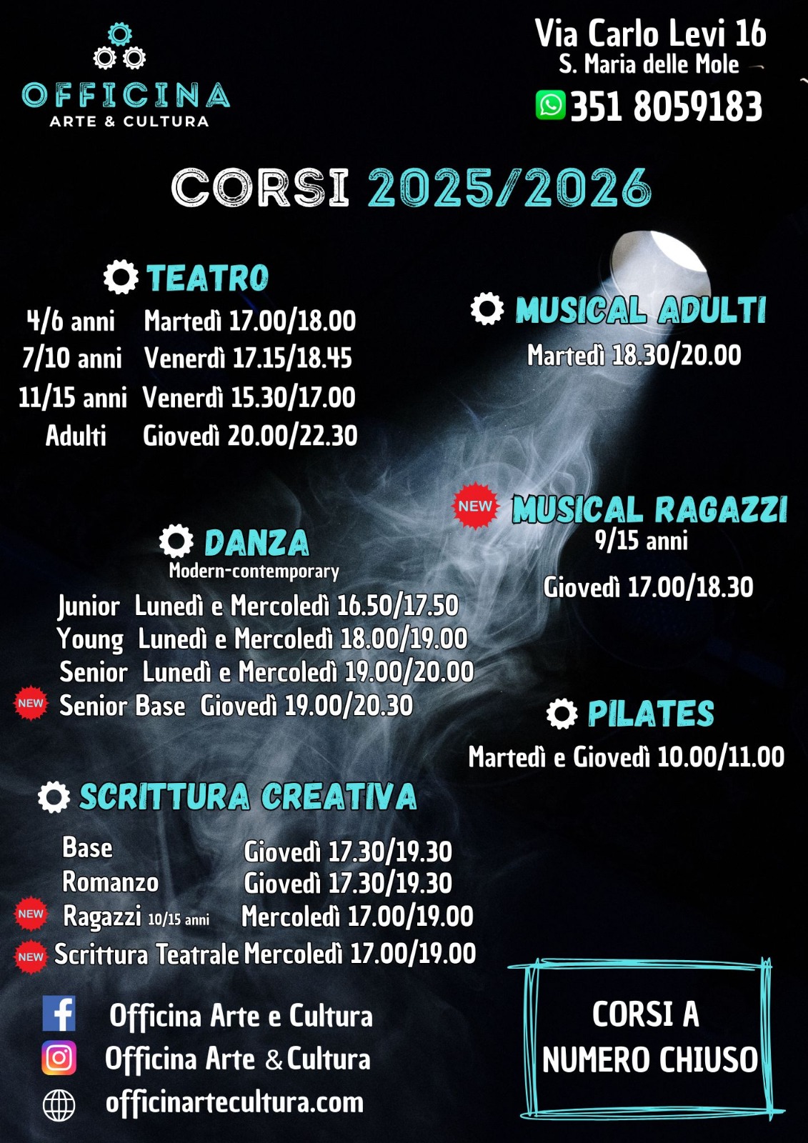 Officina Arte & Cultura nasce nel 2021 da un’idea di Giulia Ortenzi e Giuliano Calandra di creare uno spazio dedicato a chi ama il teatro e l’arte in tutte le sue forme. Uno spazio aperto a tutti, dove grandi e piccoli possono scoprire, imparare e vivere l’esperienza artistica in modo divertente e stimolante. Crediamo che l’arte sia un mezzo potente per esprimersi, crescere e connettersi con gli altri.